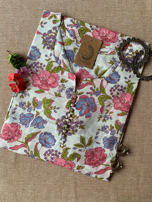 "Bageecha" Multi Floral Angrakha Cotton Kurta